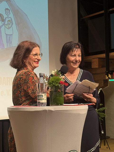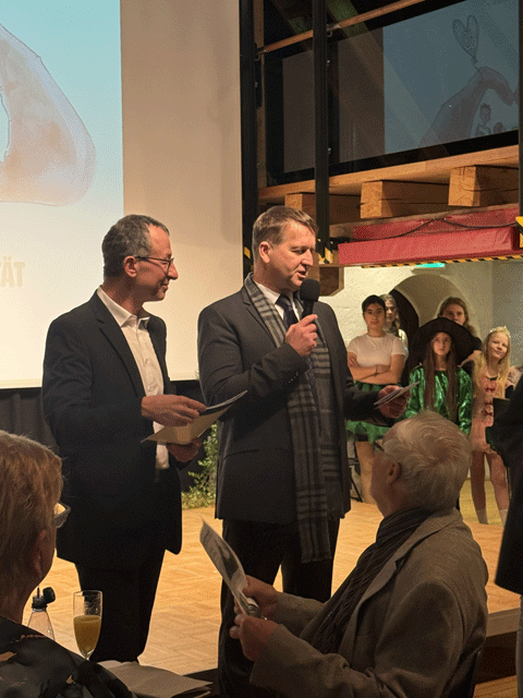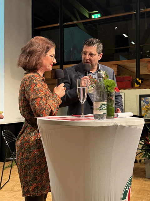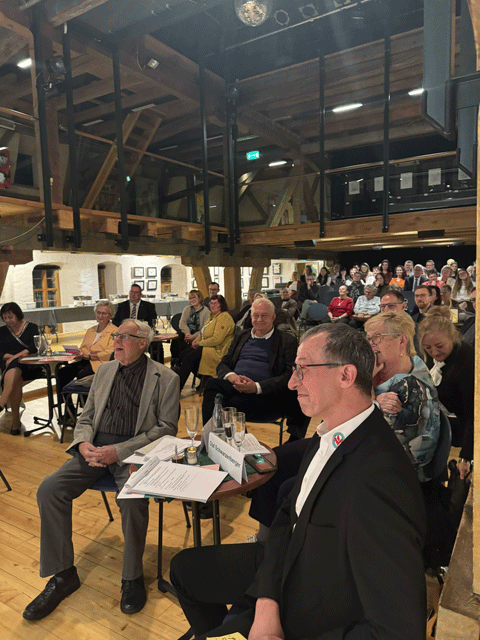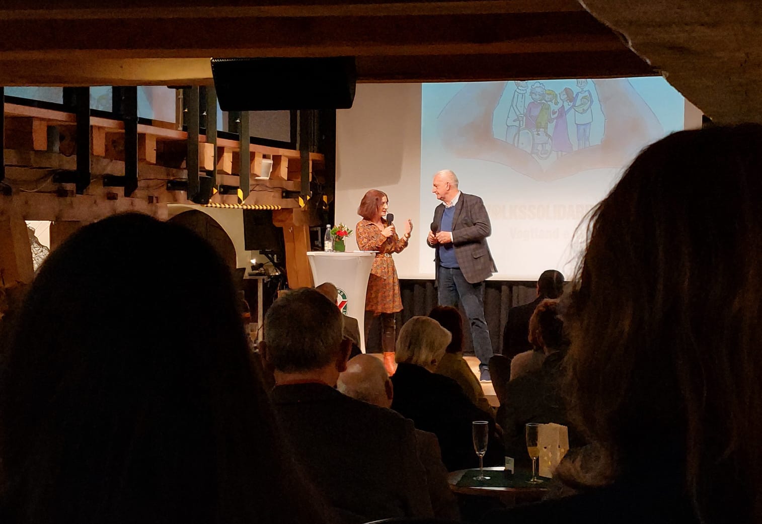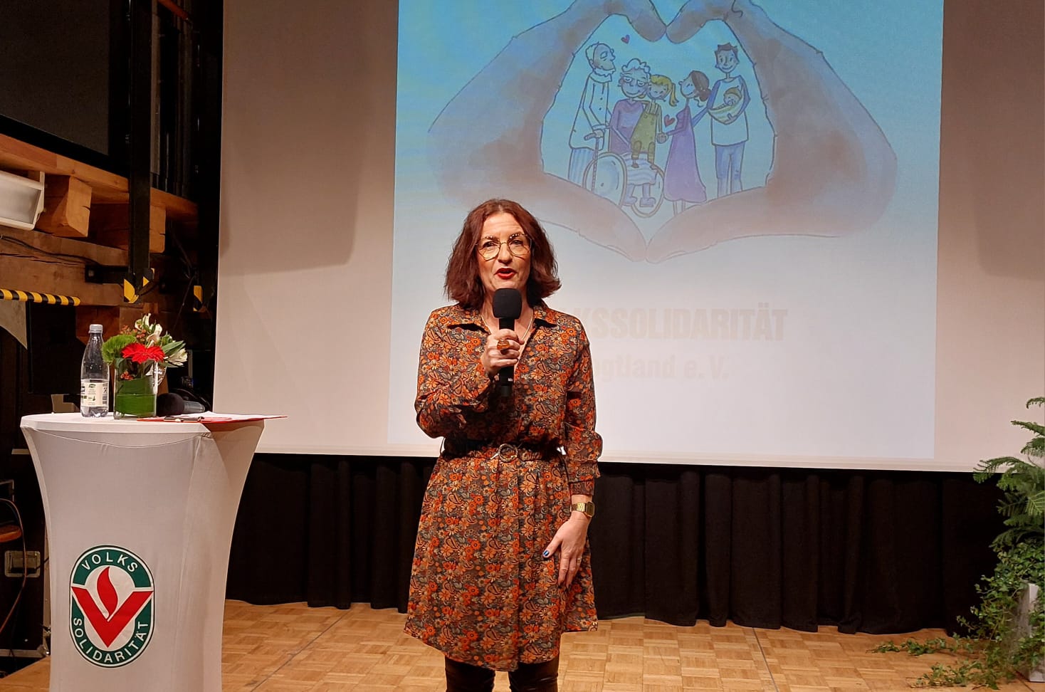 Unsere Gäste – Oberbürgermeister, Bürgermeister, Vertreter aus den Kommunen, Geschäftspartner, Vorsitzende unserer Mitgliedergruppen sowie Mitarbeitende – genossen ein kurzweiliges Programm, das die „Landrätin Resi“ (Therese Langhof-Thomas) charmant und mit Witz moderierte. In kurzen Interviews ließen wir die Vergangenheit Revue passieren, betrachteten die Gegenwart und wagten einen Blick in die Zukunft der Volkssolidarität Vogtland e. V..