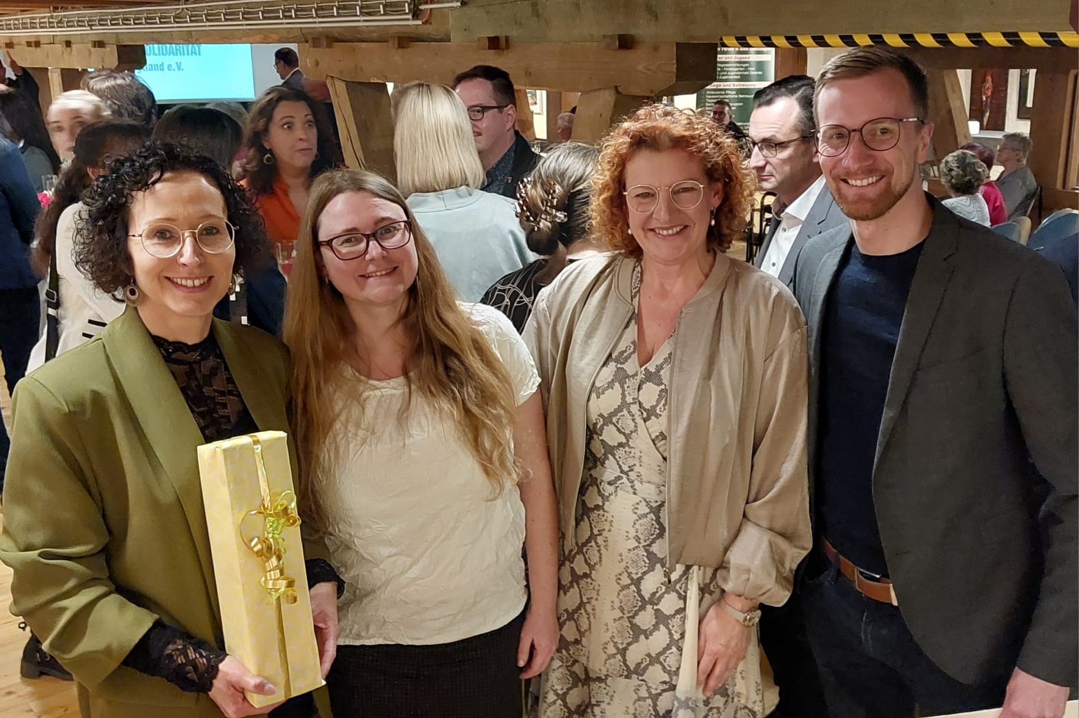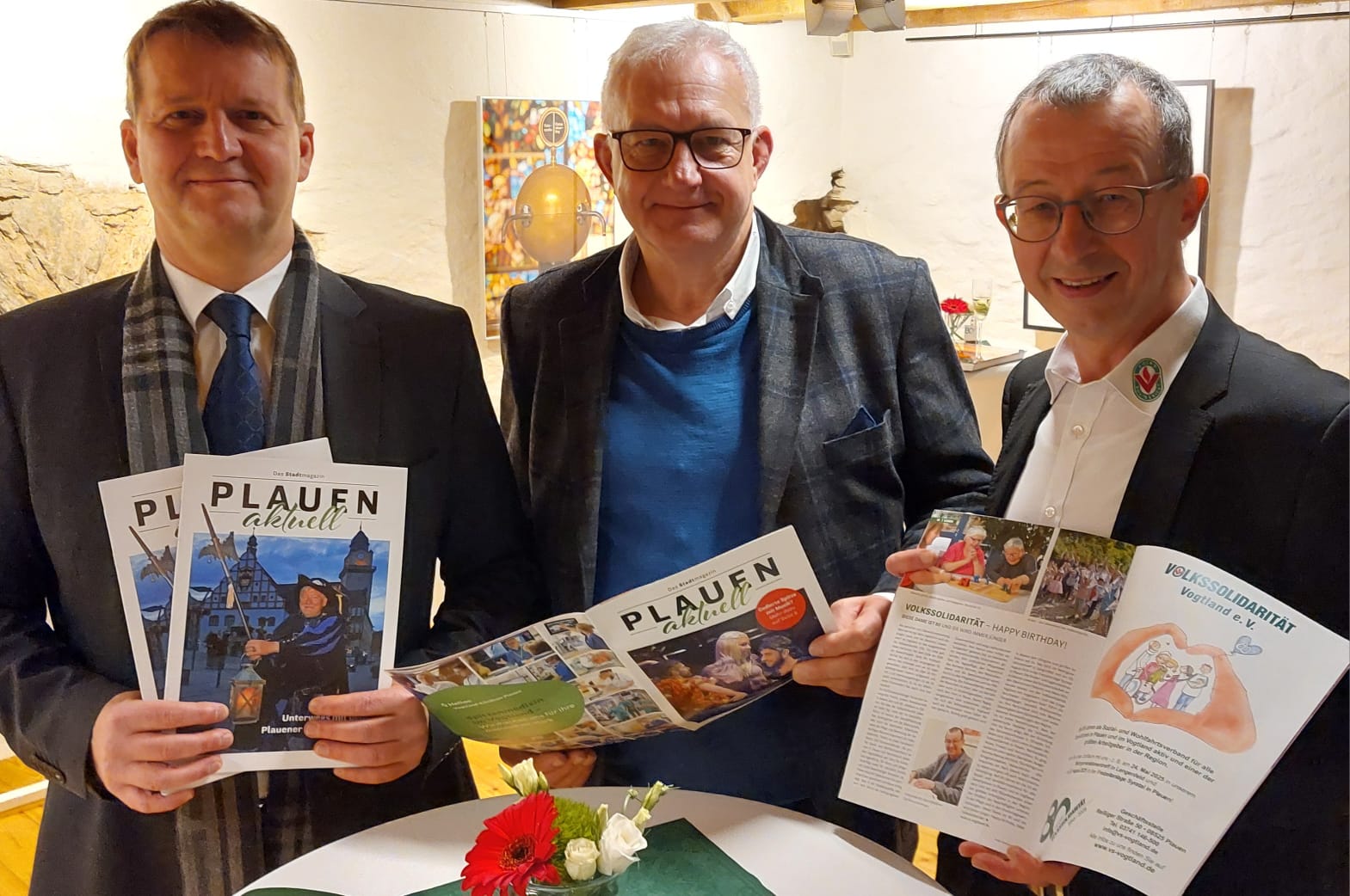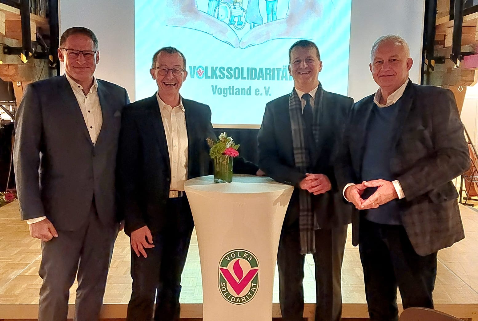 Vorstandsvorsitzender des Landesverbandes Sachsen der Volkssolidarität Steffen-Claudio Lemme, langjähriges Mitglied und ehemalige Mitarbeitende Sieglinde Hukauf, langjährige Vorsitzende einer Mitgliedergruppe und ehemalige Mitarbeitende Ulrike Taubald, 1. Geschäftsführer der ehemaligen Volkssolidarität Reichenbach e. V. Windfried Feige, Landrat Thomas Hennig, stellvertretende Geschäftsführerin des Paritätischen Sachsen e. V. Simone Zimmermann, Vorstandsvorsitzender unseres Verbandes Andreas Junghanns sowie stellvertretende Vorstandsvorsitzende Sigrid Mann.