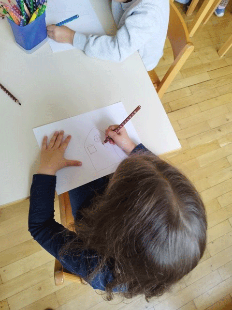 Ab dem 3. Lebensjahr betreuen wir die Kinder in vier altershomogenen Gruppen im Kindergartenbereich. Die vier Gruppenräume mit integrierten Nebenraum besitzen jeweils eine eigene Garderobe und einen Sanitärbereich. Zwei Gruppenbereiche befinden sich im Erdgeschoss und zwei Gruppenbereiche in der oberen Etage. Im Erdgeschoss befindet sich ein Raum für Kleingruppenarbeit bzw. Elterngespräche. Der Küchentrakt mit separater Kinderküche, Schlafraum und der Theaterraum befinden sich ebenfalls im Erdgeschoss.