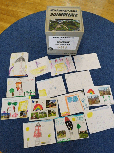 Nach der Auftaktveranstaltung im Rathaus erhielten wir im Oktober einen Wunschbriefkasten, in dem die Kinder ihre Ideen und Wünsche, die sie gemalt haben, einwerfen können. Wir sind eine von drei Einrichtungen neben dem Hort der Herbart-Grundschule und dem Kinderland Plauen e. V. , die sich an diesem Projekt beteiligen dürfen. Die gesammelten Vorschläge werden anschließend Ende November gemeinsam mit den Kindern besprochen und priorisiert. Schritt für Schritt entstehen so die wichtigsten Bausteine für die konkrete Planung des Dillnerplatzes.