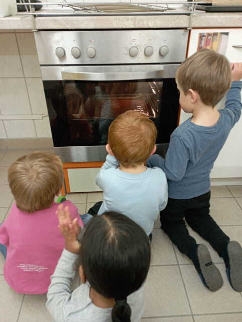 Am 5. November wurde in unserer Kita fleißig gebacken,denn am nächsten Tag hatten wir den „Ich-zeig-dir-meine-Kita-Nachmittag“. Jedes Kind durfte an diesem Tag einen Wunsch-Gast mitbringen – so zum Beispiel Oma oder Opa, die große Schwester, Tante oder Onkel. Unsere Marienkäfer warteten gespannt, bis ihr Kuchen fertig war.