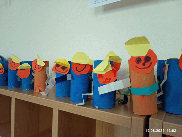 Die Kinder der Schneewittchen-Gruppe in der Kita Märchenland bastelten kleine Bauarbeiter.