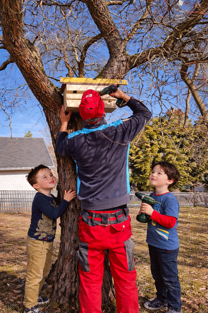 Im Rahmen unserer Batteriesammelaktion 2025 haben wir ein tolles Sperlingskoloniehaus erhalten. Gemeinsam mit unserem Hausmeister haben wir es im Außengelände unserer Kita aufgehängt.