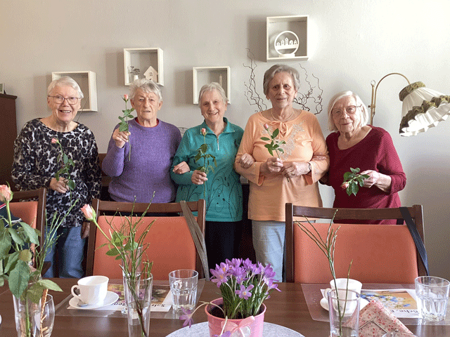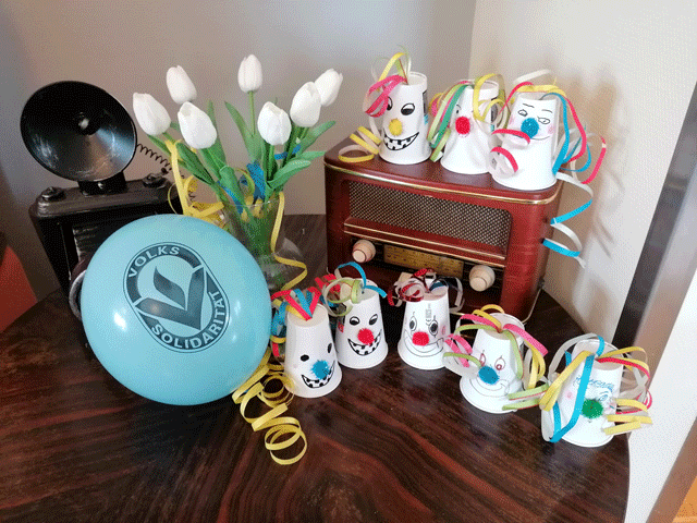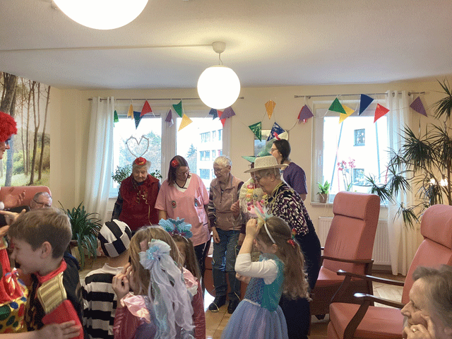Im Februar und März war in unserer Tagespflege in Oelsnitz viel los. Zum Valentinstag bastelten unsere Tagesgäste fleißig Herzen aus Tannenzapfen. Am Rosenmontag entstanden fröhliche Clowns und am Faschingsdienstag feierten wir gemeinsam mit der Kita „Am Stadion“. Regelmäßig verwöhnen wir unsere Gäste mit kleinen Überraschungen – zum Beispiel mit selbstgemachter Zitronenlimonade. Große Freude bereitet immer auch der Besuch von Hund Cham, der stets für strahlende Gesichter sorgt. Zum Frauentag überraschten wir unsere Tagesgäste außerdem mit einer Rose.