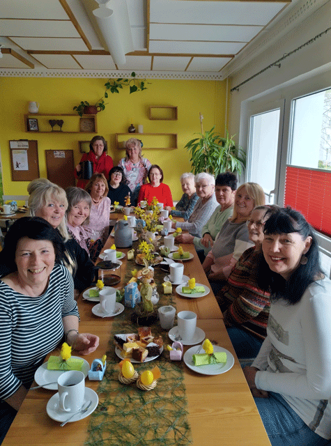 Das Team unserer Kita trifft sich regelmäßig mit ehemaligen Kolleginnen, die schon im Ruhestand sind, so z. B. Ende März zum „Ostertreffen“. Es gab selbstgebackenen Kuchen, wunderschön gebastelte Tischdeko und viel zu erzählen.