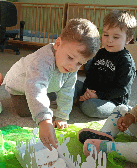 Die jüngsten Krippenkinder unserer Kita haben den Frühling entdeckt. Auf einem Spaziergang wurden die Frühblüher erkundet und genau betrachtet. Zurück im Kindergarten haben alle zusammen Ostergras gesät.