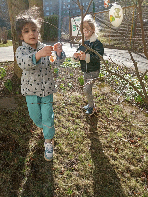 Für Ostern haben die Kinder den Garten geschmückt.
