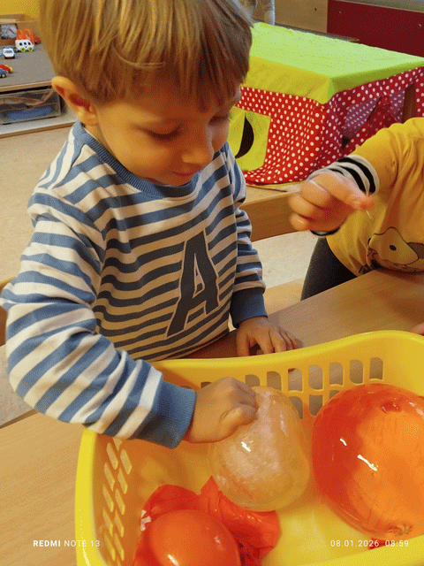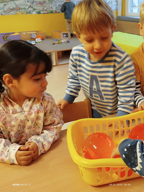 In der Kinderkrippe unserer Kita „An Bärenstein“ ist allerhand los! So durften die Kinder zum Beispiel Schnee bemalen. Das fördert die Kreativität und die Wahrnehmung von Farbkontrasten. Außerdem konnten sie über ein Eis-Experiment staunen. Über Nacht wurde Wasser in einem Luftballon eingefroren. Der Luftballon wurde dann entfernt, sodass die Kinder dann mit der Eiskugel spielen konnten.