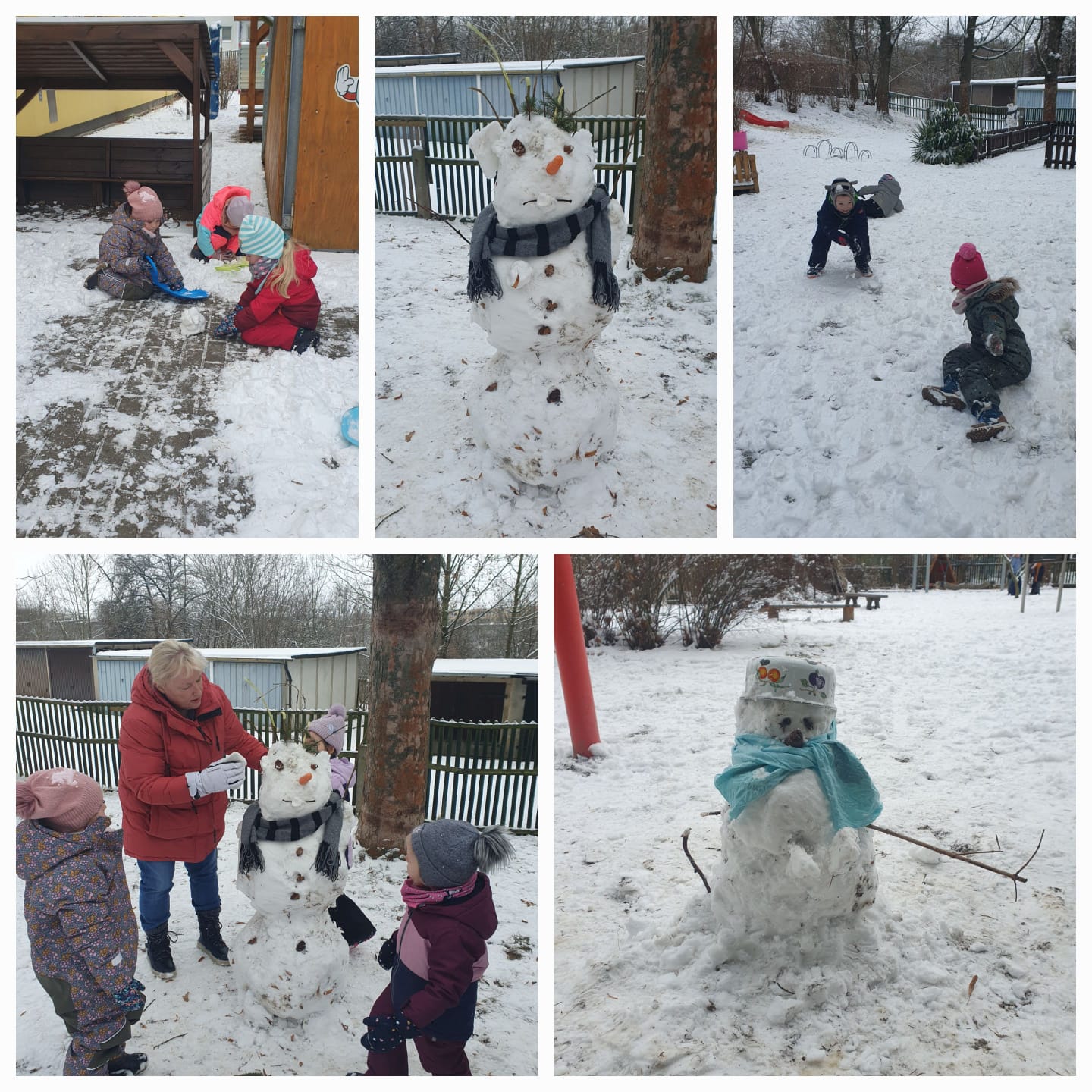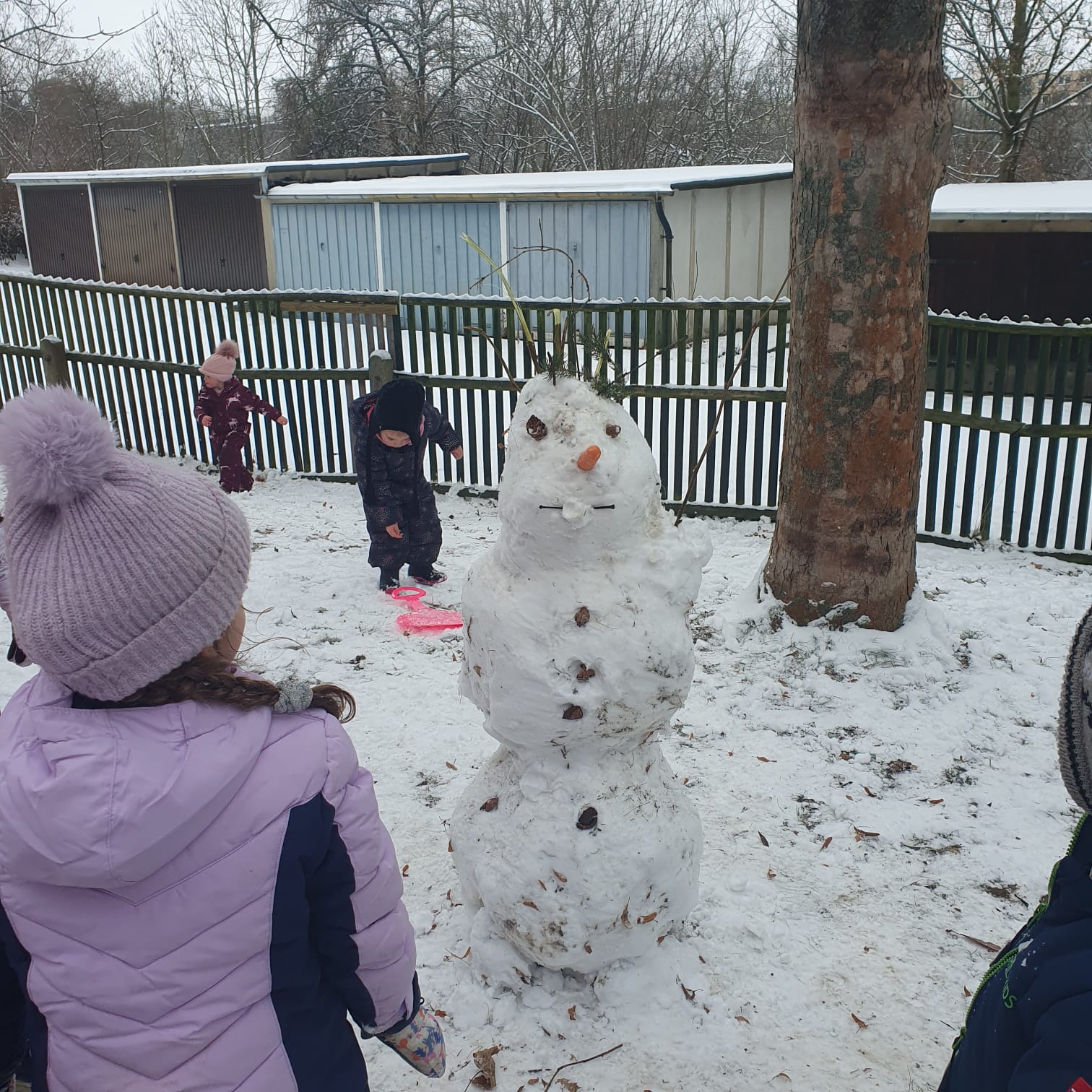 Die Kitakinder unserer Kita „Pfiffikus“ genießen das Winterwetter! So bauten sie zum Beispiel einen Schneemann.